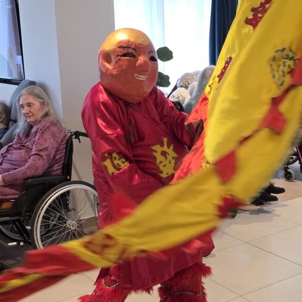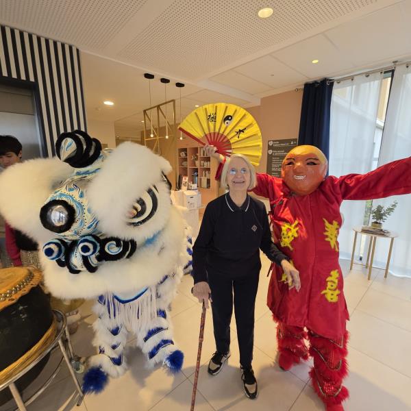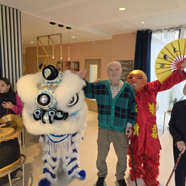 Voyage en Chine : En préparation du Nouvel An chinois, les résidents ont exploré les merveilles de l'Asie à travers des reportages et des échanges culturels. Un événement exceptionnel : Nous avons eu l'immense plaisir d'accueillir l'association ARAC CAFI de Sainte-Livrade-sur-Lot. Grâce à eux, la résidence a vibré au rythme des musiques traditionnelles et d'un spectaculaire défilé du dragon. Ce moment de partage a permis aux résidents de découvrir une autre façon de fêter la nouvelle année, dans une explosion de couleurs et de joie après un repas à thème aux saveurs d’Asie.