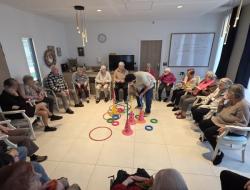 Le rendez-vous avec la gym douce connaît un succès grandissant. Encadrés par Maxime et Stéphane, les résidents ont travaillé leur équilibre et leur souplesse dans la bonne humeur. Ces séances sont aussi l'occasion de stimuler la mémoire et de favoriser l'entraide entre les participants.
