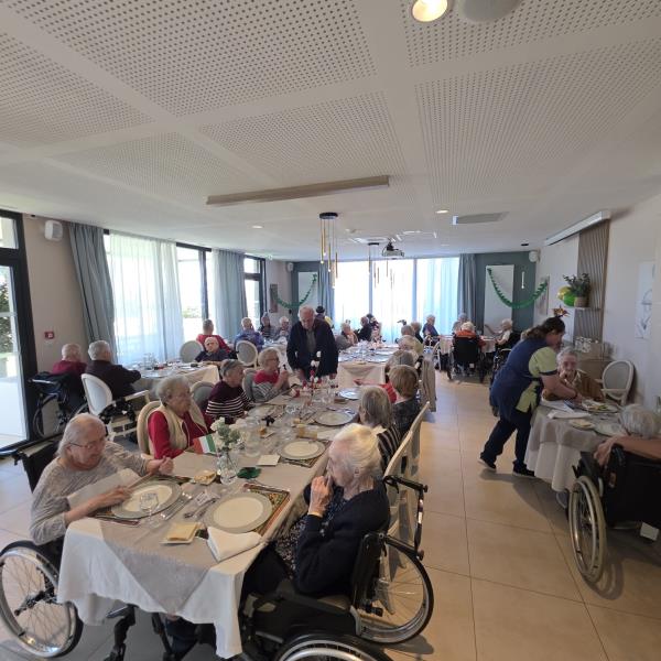 Dès l'aube, nos résidents ont fait preuve d'une concentration exemplaire. La séance de gym douce a mis l'accent sur la précision du geste. D'abord bien installés pour des exercices assis, les participants se sont ensuite levés pour travailler leur équilibre. Une mise en jambes idéale pour préparer les festivités à venir !