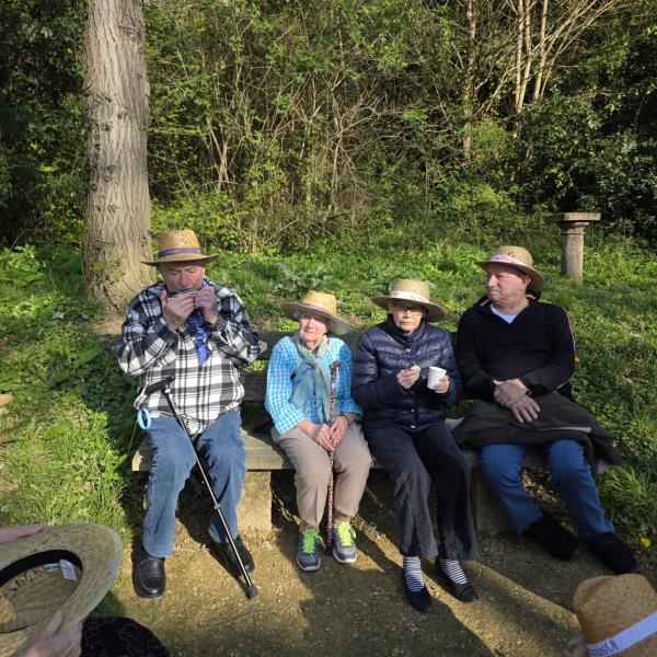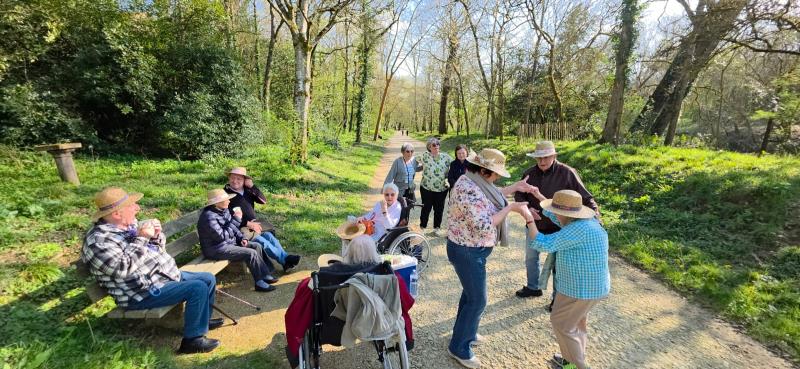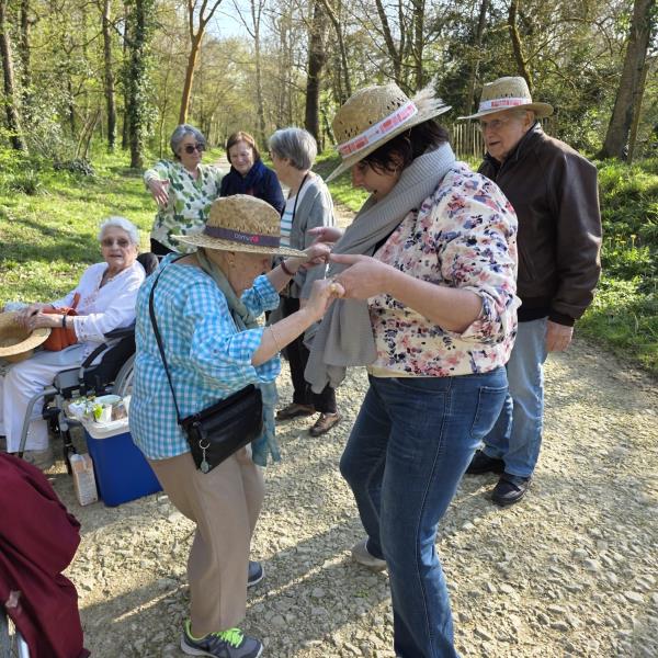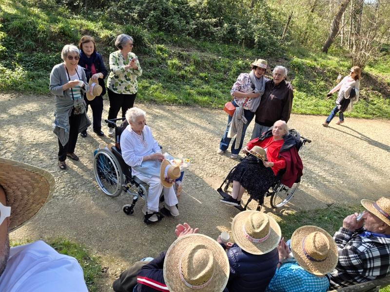 Le moment fort de cette escapade fut sans nul doute l'instant où Monsieur L. a sorti son célèbre harmonica. Les notes se sont envolées sous les frondaisons, rapidement rejointes par les voix des résidents qui ont repris en chœur ces airs familiers. Quelques pas de danse ont même été esquissés sur le sentier, transformant cette sortie en un véritable bal champêtre improvisé.