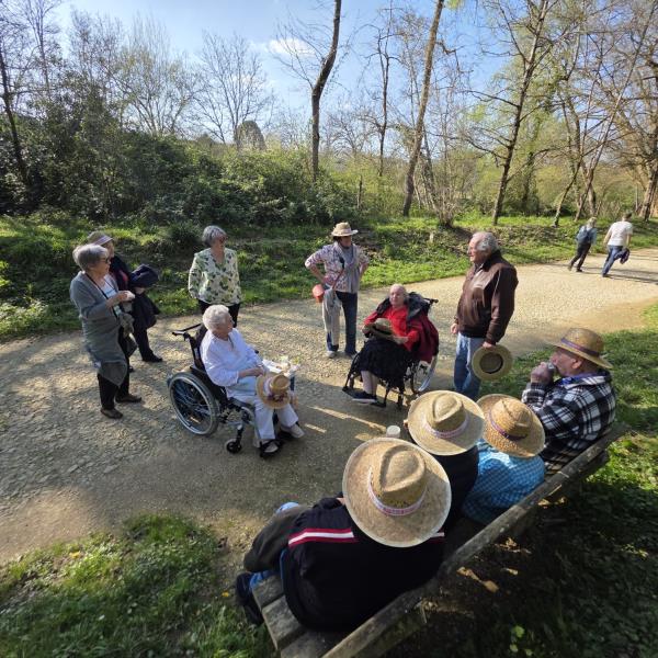 L'après-midi a sonné l'heure de la promenade. Direction le Parc de la Garenne à Nérac, véritable écrin de verdure, pour une halte contemplative à la célèbre fontaine de Fleurette. Ce décor bucolique a naturellement invité aux confidences et à la culture. On y a évoqué avec passion l’histoire locale, la figure emblématique d'Henri IV, tout en laissant les esprits s'évader lors de discussions sur les voyages d'antan.
