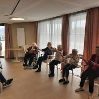 Publiée le 28/02/2022Les bonnes habitudes des beaux jours reprennent à Agen! Pendant qu'un groupe était à l'atelier de musicothérapie, les autres ont pris un bain de soleil. Et c'était bien agréable. Puis nous nous sommes tous rejoints pour chanter ensemble! Lire la suite