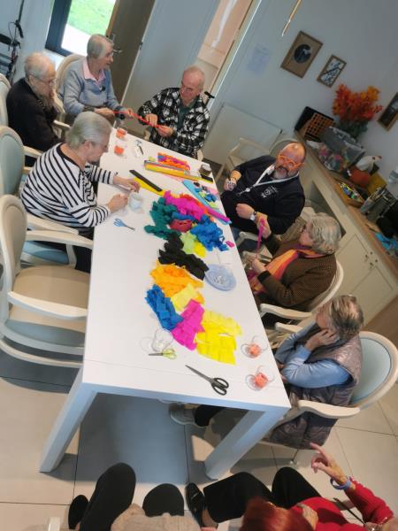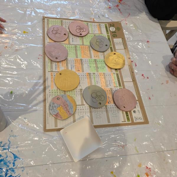 Les ateliers artistiques étaient l'occasion pour les résidents de pouvoir fabriquer des fanions pour supporter les sportifs ainsi que les médailles des mini-olympiades qui auront lieu le 25/02.