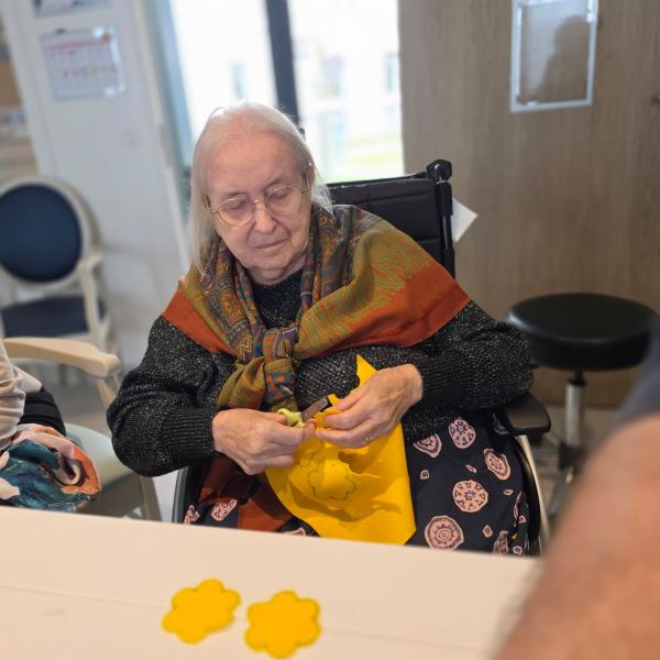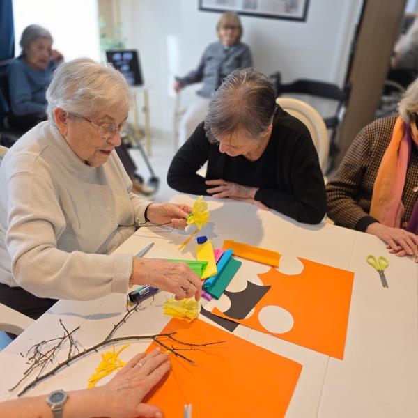 Ateliers Créatifs : Sous le signe du renouveau printanier, les résidents ont confectionné avec soin des tournesols et des crocus en papier crépon et feutrine. Ces ateliers ont été propices au partage de souvenirs liés à la nature, aux jardins d'enfance et aux senteurs florales.