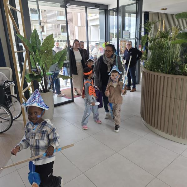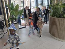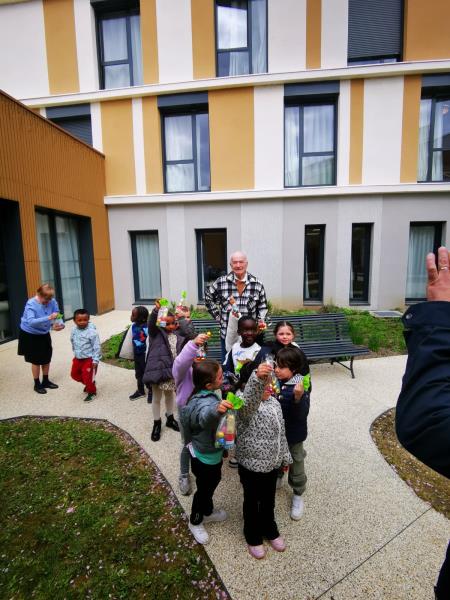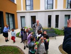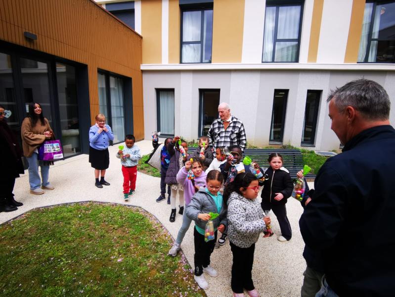 Chasse aux trésors : Un moment complice avec les enfants de l’école Herriot, traquant les chocolats dans le jardin et la résidence.