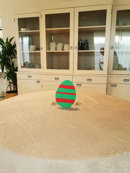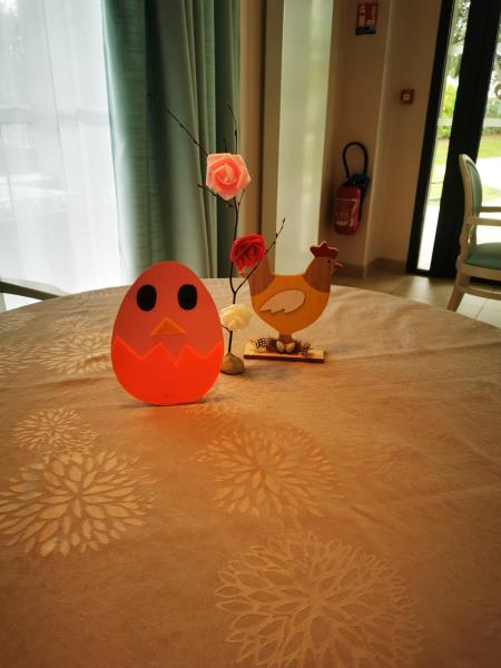 Créativité : Confection de centres de table et décoration d'œufs colorés.